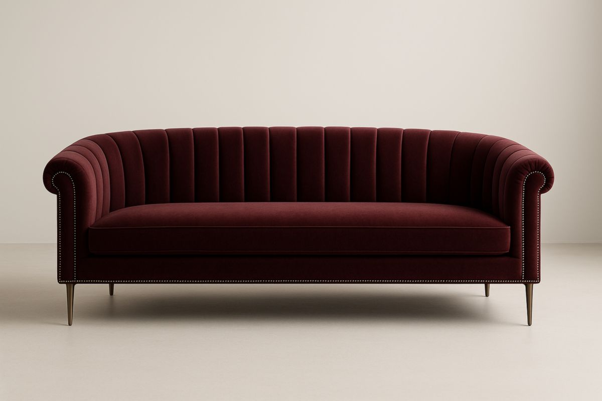 Divano in Velluto Bordeaux con Gambe in Metallo 200x85x75 cm