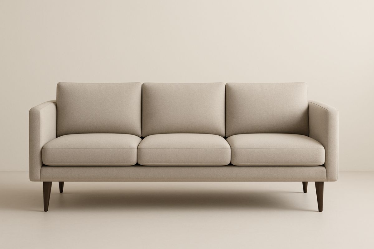 Divano tre posti tessuto beige legno massello lunghezza 220cm