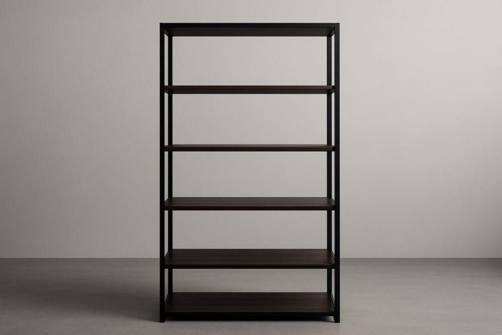 Scaffale in acciaio e legno MDF a 5 ripiani, marrone/nero